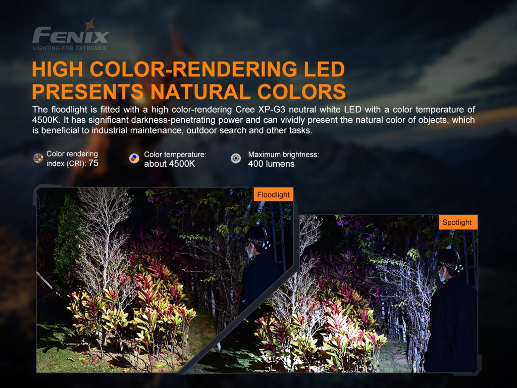 - 1700 lumens maximum output (1300 lumens spotlight + 400 lumens floodlight).