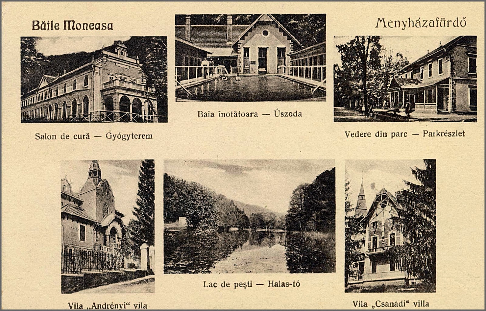 În documentele austro-ungare și în cataloagele turistice ale vremii, Salonul de Cură era denumit Menyházafürdő – Gyógyterem , fiind considerat nucleul vieții mondene și balneare din stațiune. El a impus un model arhitectural și funcțional care a fost urmat de toate clădirile construite ulterior în stațiune.